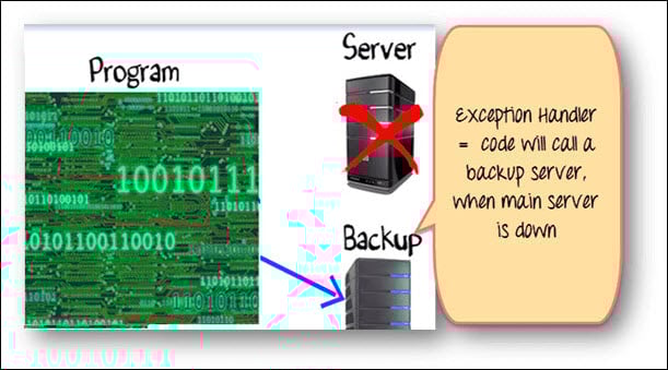 在我们的示例中,良好的异常处理方式是,当服务器关闭时,连接到备用服务器。