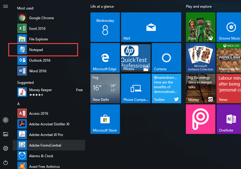 在此 Java Hello World 示例中,我们将使用记事本。它是 Windows 操作系统自带的一个简单编辑器。您也可以使用其他文本编辑器,如 NotePad++,或者使用 在线 Java 编译器。