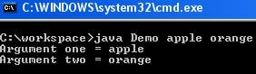 步骤 3) 运行代码,例如 java Demo apple orange.