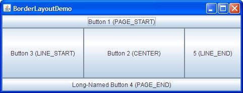 BorderLayout 将组件放置在最多五个区域:顶部、底部、左侧、右侧和中心。它是每个 Java JFrame 的默认布局管理器。