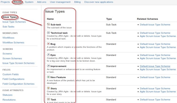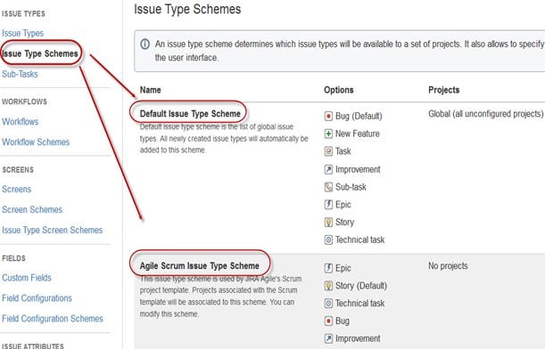 在 Jira 项目管理工具中有两种类型的问题类型方案