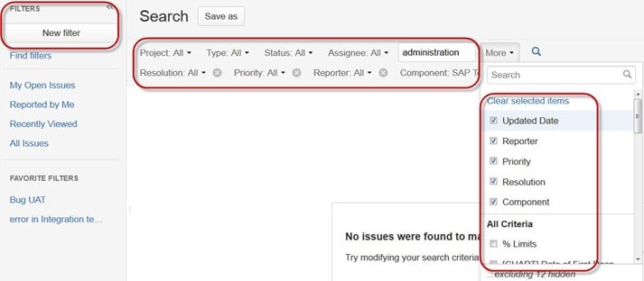 在同一个窗口中,您可以为问题设置筛选器并将其保存在“收藏的筛选器”下,这样当您想搜索或查看特定问题时,可以使用该筛选器来定位它。