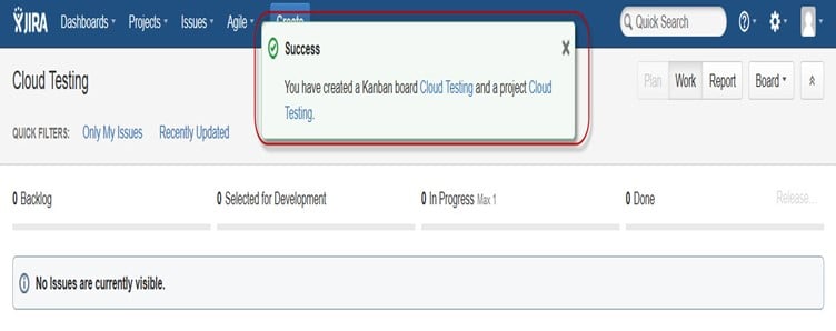 在这里,我们在看板中创建了问题“负载测试时检测到缺陷”和“检查与云服务器相关的问题”,如下面的屏幕截图所示,它还显示了它们的状态,用红色突出显示。