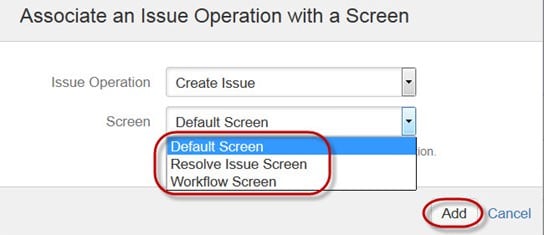 在 JIRA 中创建问题时,它将被安排并以不同字段表示;JIRA 中字段的这种显示称为屏幕。该字段可以通过工作流进行转换和编辑。对于每个问题,您可以分配屏幕类型,如屏幕截图所示。要将问题操作与屏幕关联,您需要进入主菜单,点击问题,点击屏幕方案,然后点击“将问题操作与屏幕关联”,并根据需求添加屏幕。在本针对测试人员的 Jira 教程中,我们将学习 Jira 问题属性。
