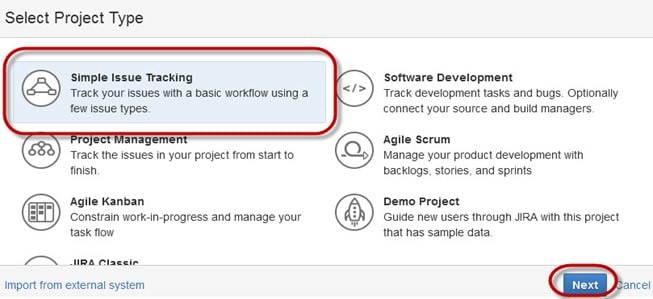 问题类型显示了所有可以通过 Jira 测试工具创建和跟踪的项目类型。JIRA 问题被分为多种形式,如新功能、子任务、缺陷等,如屏幕截图所示。