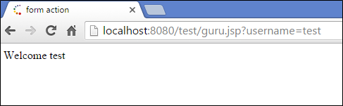 当您输入 test 并单击提交按钮时,您将获得以下输出“Welcome Test”。