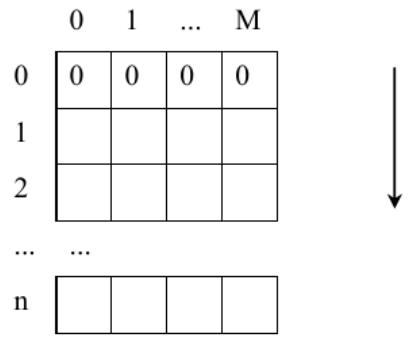 - 首先,填充动态规划的基础:第 0 行包含所有零。