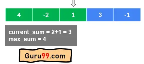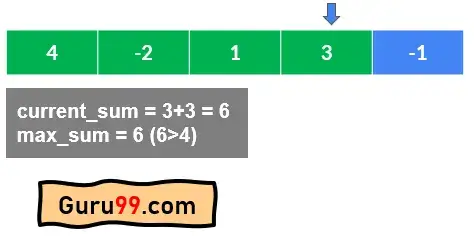 在这种情况下,max_sum 小于 current_sum。因此,max_sum 将被 current_sum 的值更新。