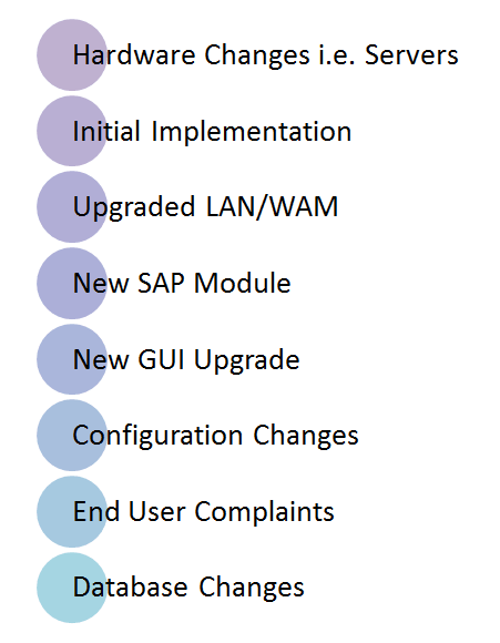 一旦 SAP 系统配置、定制、部署并上线后,对 SAP 系统进行的任何更改都称为维护。这可能包括: