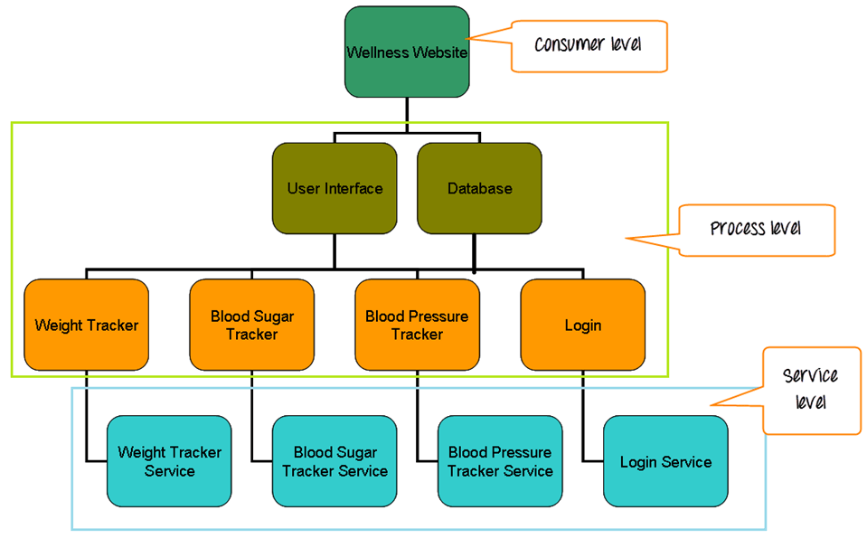 根据层级,SOA应用程序的测试分为三个级别。