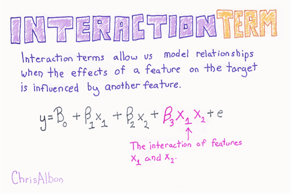 您需要向每个数据集(训练集 + 测试集)添加两个新列。为此,您创建一个函数来计算交互项,再创建一个函数来计算三项交互作用。每个函数都会生成一个新列。在新变量创建后,您可以将它们连接到训练数据集和测试数据集。