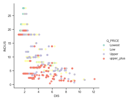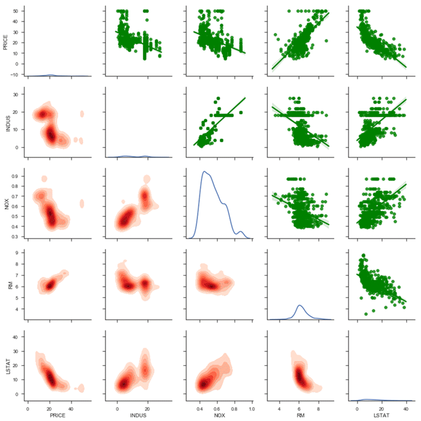 在教程的第一部分,您看到了变量之间存在有趣的关联。不同的可视化技术表明 INDUS 和 NOS 相互关联,并会放大对价格的影响。不仅 INDUS 和 NOS 之间的交互作用影响价格,而且当它与 DIS 交互时,这种影响会更强。