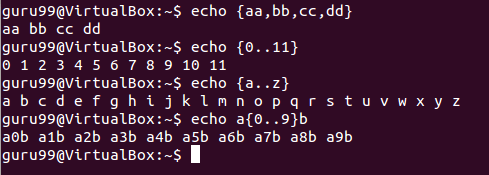 在上面的例子中,echo 命令使用花括号展开来创建字符串。