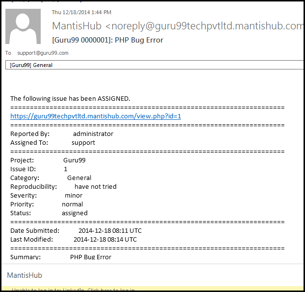 步骤 9) 问题提交后,开发人员会收到一封电子邮件。