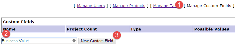 步骤 1) 在“管理”选项卡下,转到“管理项目”