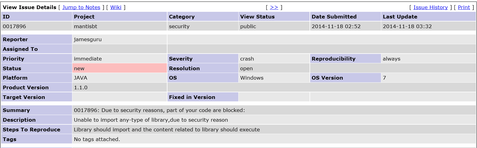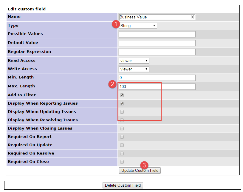 注意:您在您的 Mantis 版本中看到的字段会有所不同。请参阅我们关于自定义字段的部分。