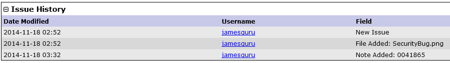 步骤 8) 您可以点击问题报告顶部的“历史记录”以查看问题历史。此问题历史包含诸如问题何时创建、文件何时添加到问题中,或者是否有任何备注添加到问题中的详细信息。