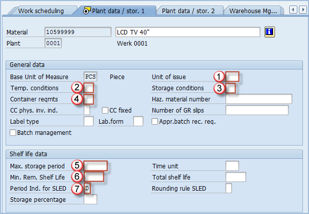 - 最小剩余保质期: 物料允许储存的最小剩余时间(如果剩余时间短于最小值 – 系统将拒绝收货)。