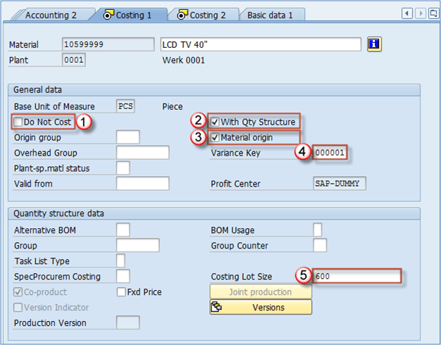 - 利润中心: 为物料分配一个适当的利润中心,用于控制模块。这意味着从此物料产生的利润将分配给在此字段中设置的利润中心。例如,如果这是一个通过销售获利的成品,您可能希望选择一个销售收入的利润中心。这也取决于管理层的决定。管理层可能更喜欢使用其他关键字进行利润中心会计。