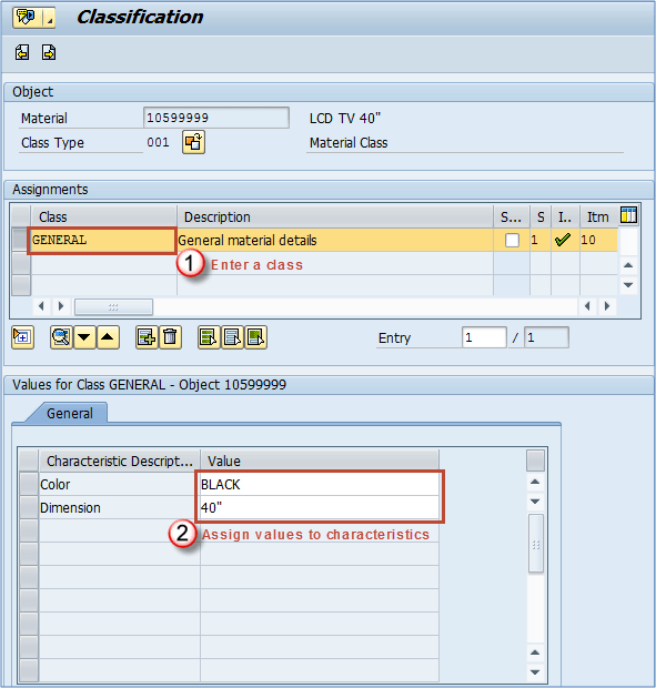物料可以进行分类,以便以后按其类别、批次特性等进行查找。假设我们有一堆不同尺寸、颜色等的电视机。您可以创建两个类别:尺寸和颜色。以后您可以使用它们来查找所有黑色电视机,或特定尺寸的电视机。