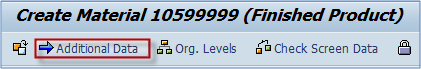 除了物料主数据视图之外,我们在 MM01 事务中还有另一个级别的维护。它也没有参考组织级别。从物料主数据的任何视图中,您可以选择“附加数据”按钮。