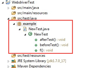 步骤 5) Eclipse 将创建具有以下结构的 WebdriverTest