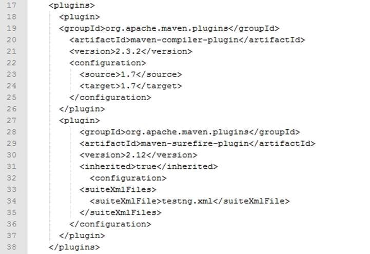 maven-surefire-plugin 用于配置和执行测试。此处,插件用于为 TestNG 测试配置 testing.xml 并生成测试报告。