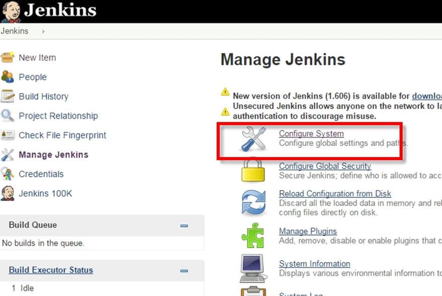 步骤 9) 转到 Manage Jenkins => Configure System,如下图所示。