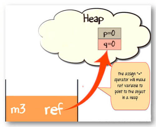 赋值“=”运算符将使引用变量指向堆中的对象。