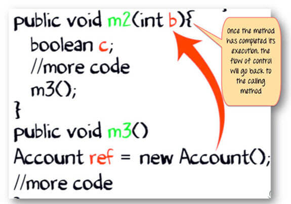 一旦方法完成了它的执行。控制流将返回到调用方法。在本例中是m2方法。