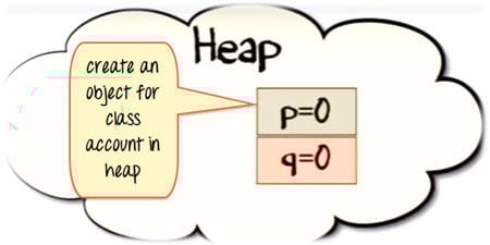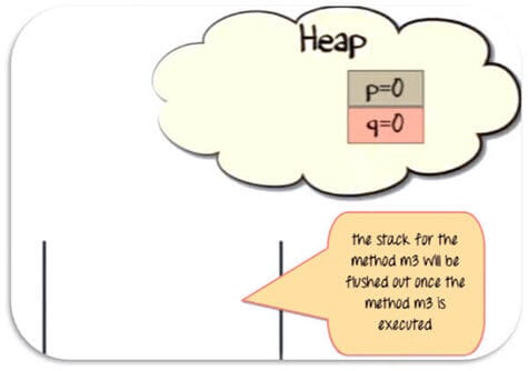 现在假设我们的m3方法正在创建一个“Account”类的对象,该类有两个实例变量 int p和int q。