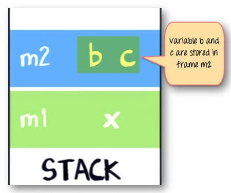 变量b和c也会在栈中m2的栈帧里创建。