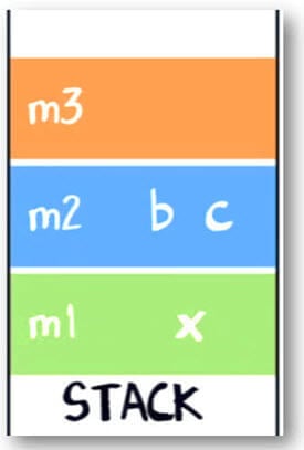 m1中的变量X也会在栈中m1的栈帧里创建。(见下图)。