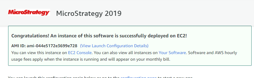 您将看到一个确认屏幕。请等待片刻,实例将启动。