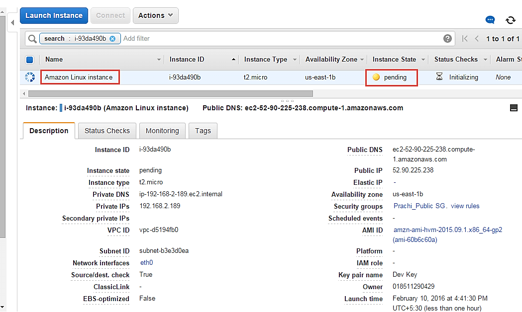 您可以像下面显示的 EC2 仪表板上查看请求的状态为“待定”。