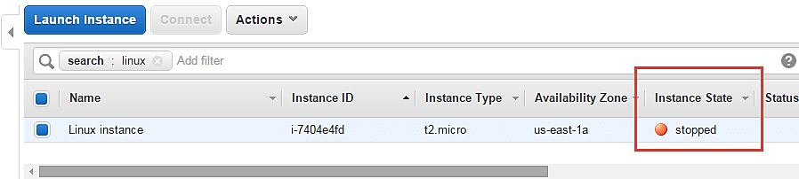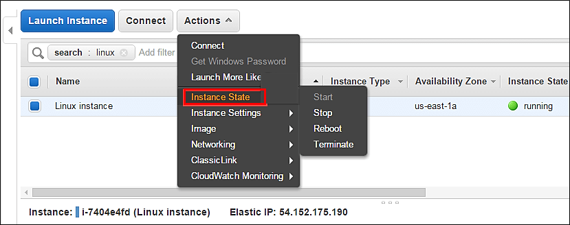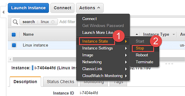 第 1 步) 在此步骤中,点击“操作”下的“实例状态”。