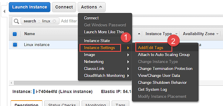 添加/编辑标签 – 您可以添加或编辑分配给实例的标签。标签化使 AWS 账户的企业所有者更容易跟踪实例,尤其是在有多个环境的情况下。
