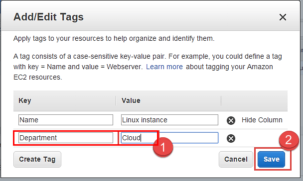 - 所以我们分配了一个名为“部门”的新标签,并将其值添加为“云”。