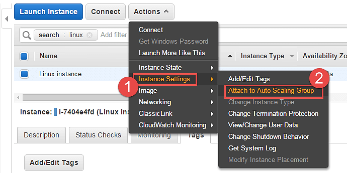 此操作会将您的实例附加到您环境中的自动伸缩组。