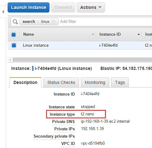 请注意,在 EC2 仪表板上,您的实例类型已自动更改为指定的类型。