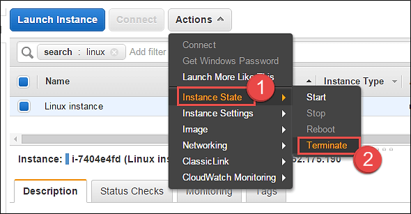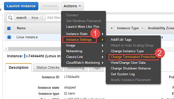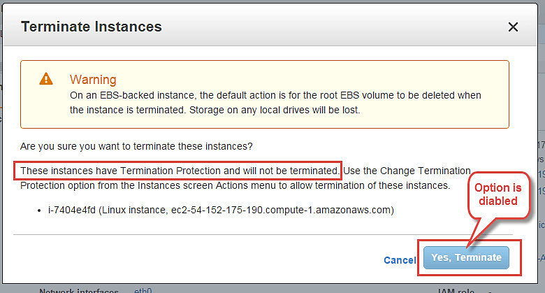 如果您不小心点击了终止实例选项,AWS 将会增加额外的安全层。
