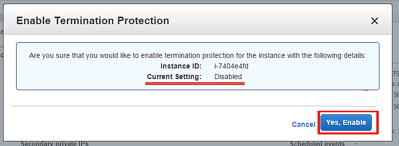 第 2 步) 请注意,我们实例上的当前设置为禁用。点击“是,启用”。