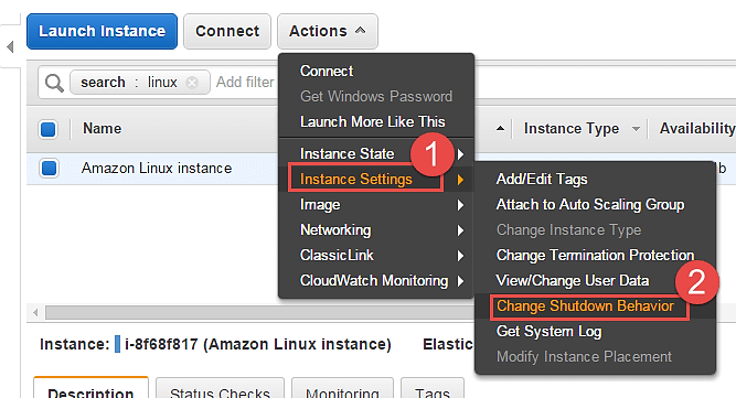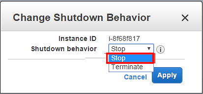 为此,我们可以将关机行为设置为“停止”而不是“终止”。如果应用程序要求如此,我们也可以反过来操作。