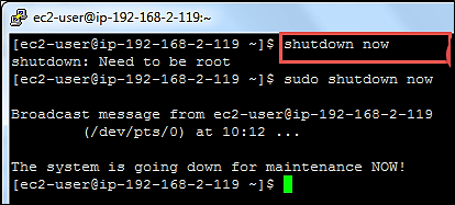 第 3 步) 现在,当通过 putty 在实例控制台中启动“停止”关机时,它将不会被终止。它只会正常关机。