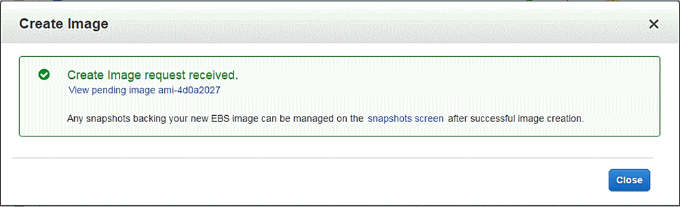 AWS 将收到您的创建镜像请求,并立即发送通知。