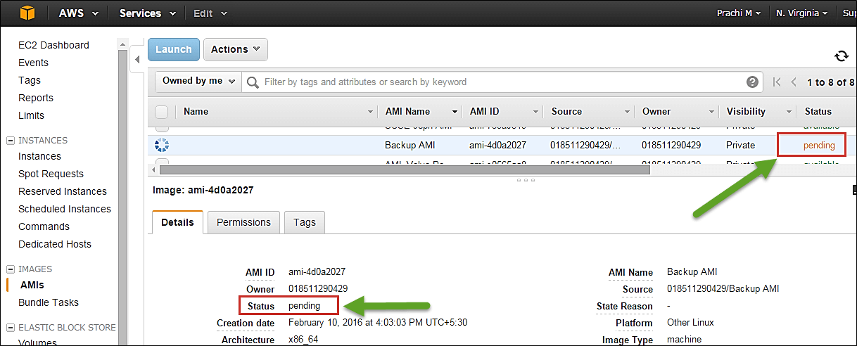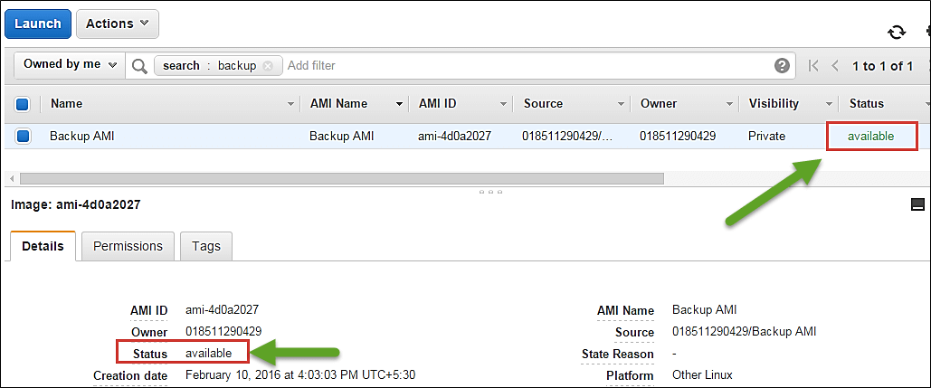过一会儿,状态将变为“可用”,您将拥有准备好的 AMI 作为备份。