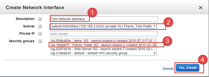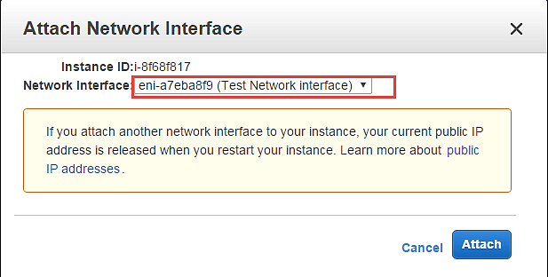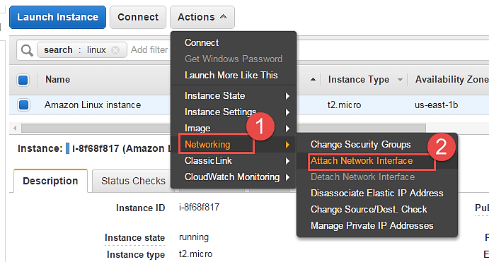 现在返回到第 2 步),继续选择我们刚刚创建的可用接口,并将其附加到实例。