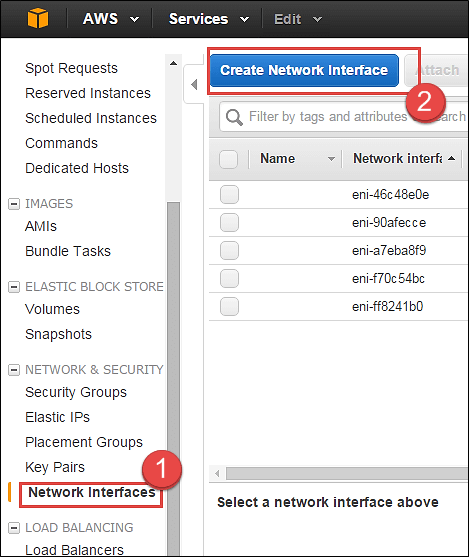 - 转到 EC2 仪表板,然后在左侧窗格中点击“网络接口”。