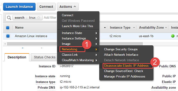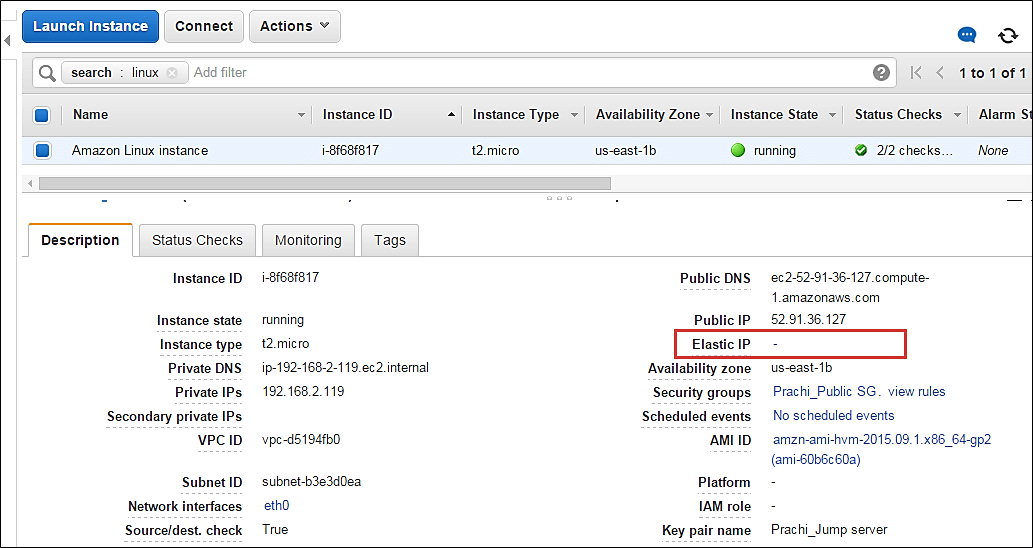 检查下方,实例仪表板现在显示 EIP 字段为空。