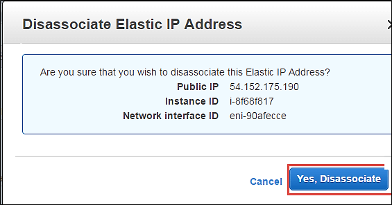 第 2 步) 验证实例 ID 和 EIP 后,点击分离按钮。